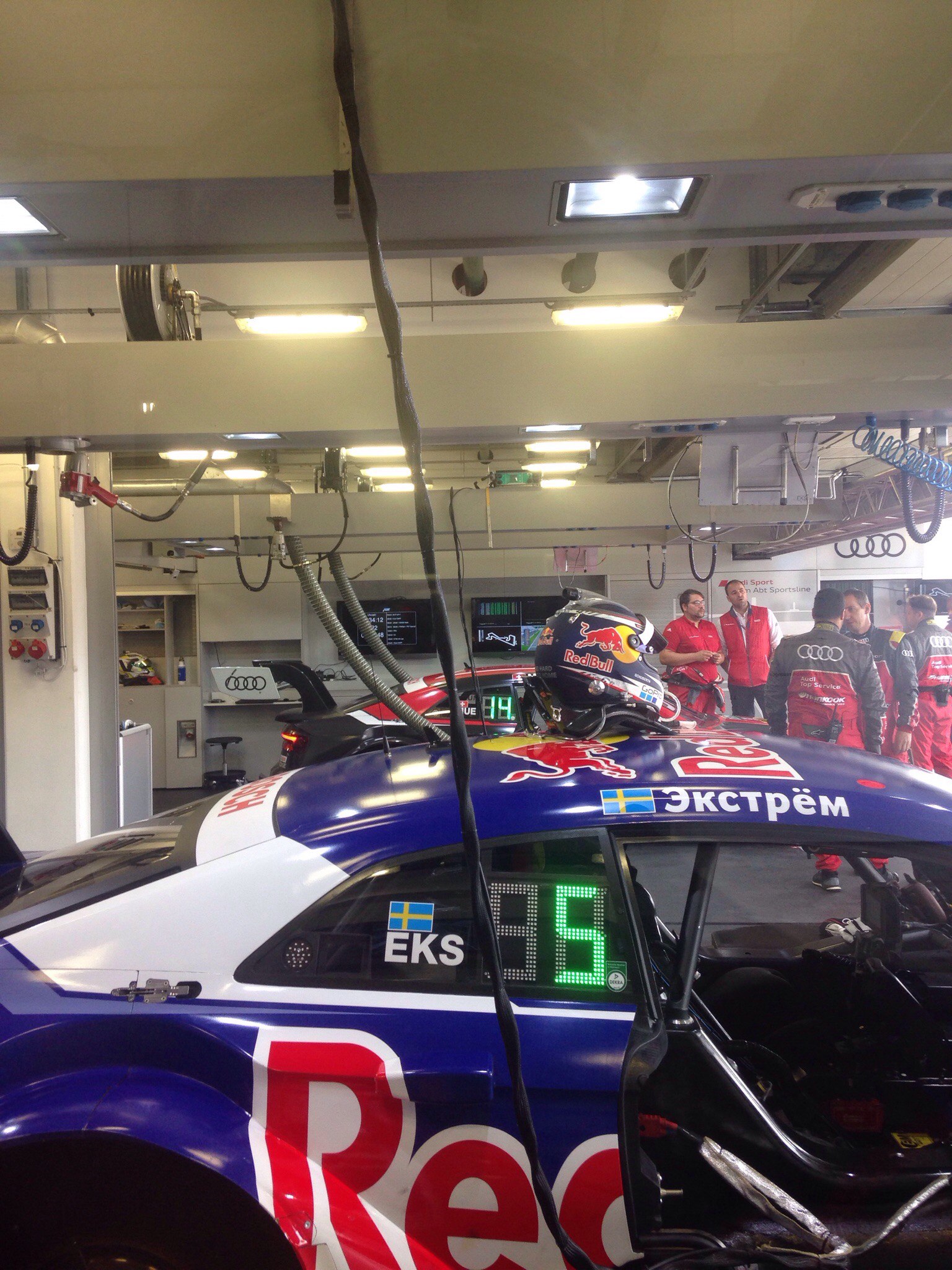 Перед началом квалификации мы зашли в боксы, где установлены окна напротив выбранных производителем команд. Было интересно наблюдать за подготовкой Маттиаса Экстрёма и Нико Мюллера к первой по-настоящему боевой сессии. Настроенные на борьбу гонщики сначала долго разминались, а затем, не обращая на зрителей внимания, сели в машину и поехали показывать свои лучшие круги.